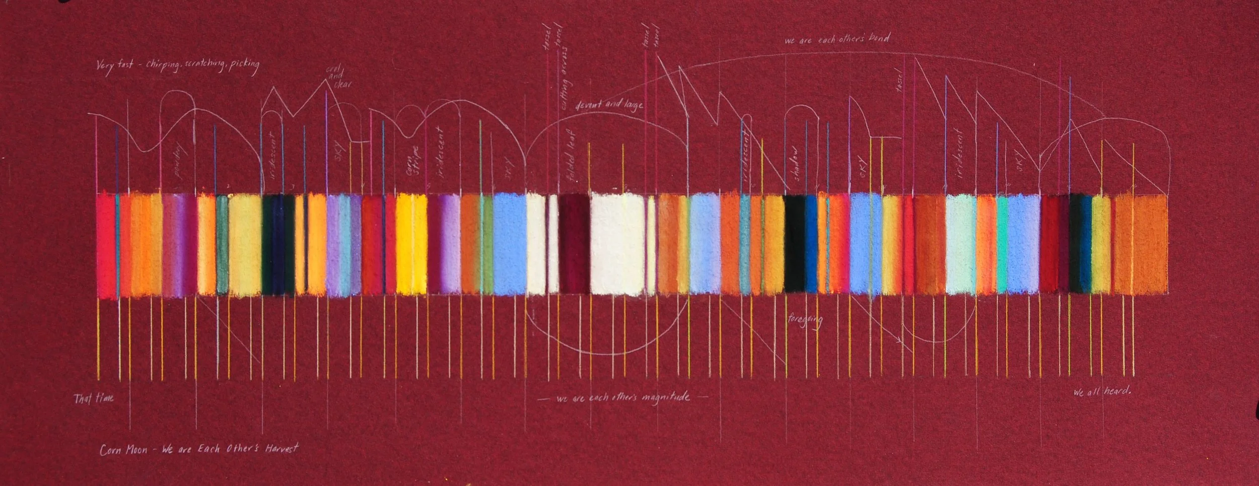 Between Starshine and Clay celebrates the remarkable qualities of bats and their unique place in our daily lives and imagination. Visual artist Kerry Hirth uses both music and color to create vibrant drawings that promote a deepening understanding of the value of bats. Weaving the myth and magic of bats into the patterns produced by the instruments we use to track, hear, and see bats, her drawings explore the unfolding mystery of their place in nature, as new and astonishing facts about bats continually surface. They also probe how our connection with bats reveals qualities of our own nature, challenging our dominion over their lives.